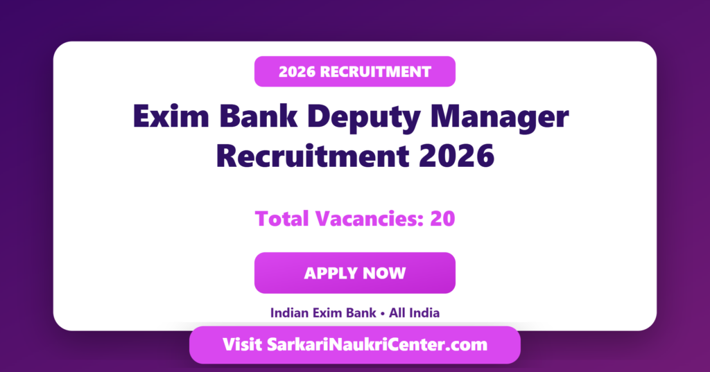 Indian Exim Bank has announced recruitment for Deputy Manager with 20 vacancies in All India. The online application process has